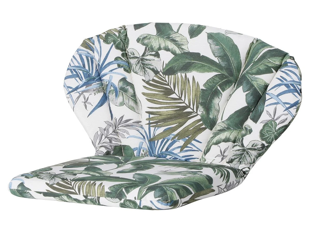 Dit tuinkussen is gemaakt van 50% katoen, 45% polyester en 5% fiber, dit geeft het gevoel van katoen maar is veel sterker dankzij de toevoeging van polyester. Om het kussen weerbestendig te maken is er een waterafstotende PA coating toegevoegd. Onder de stof zit nog een dunne plastic laag verwerkt om de beste outdoor kwaliteit te garanderen.