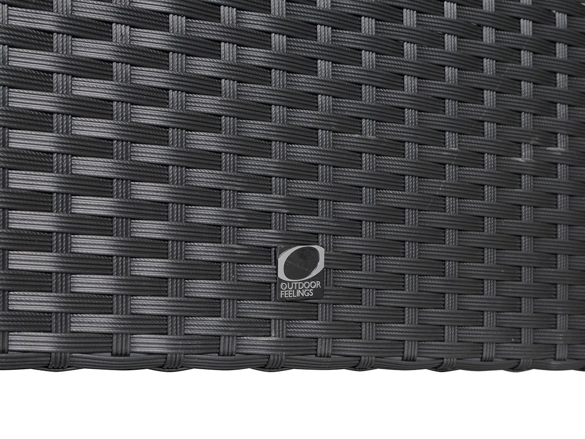 De hoek heeft een afmeting van 240 x 240 cm met een zithoogte van 39 centimeter. De hoekbank bestaat uit 5 losse zitgedeeltes die je aan elkaar vast kunt klemmen. Combineer de hocker met een dienblad om hem ook als tafel te kunnen gebruiken. Het aluminium frame en het kunststof wicker is volledig weerbestendig. Je kunt de set beschermen met een hoes voor een extra lange levensduur.