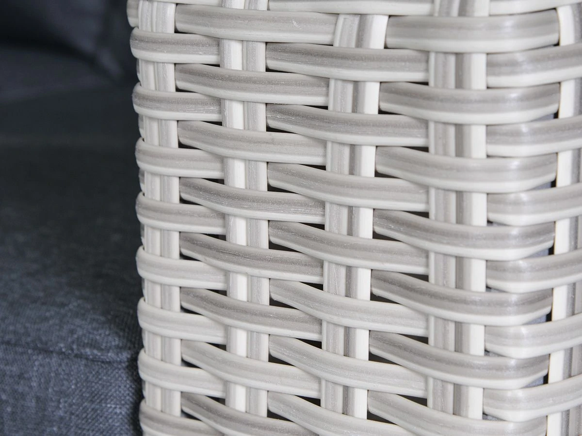 Het frame van de Plaza is van aluminium en is afgewerkt met kunststof wicker. De dikke loungekussen zorgen voor optimaal zitcomfort. De hoekbank van de Plaza heeft een afmeting van ongeveer 257 x 257 cm. De tafel heeft een afmeting van 80 x 80 x 43 cm. Berg de loungekussen op in bijvoorbeeld een kussenbox of opbergtas, de loungeset zelf kan het hele jaar door buiten blijven staan.
