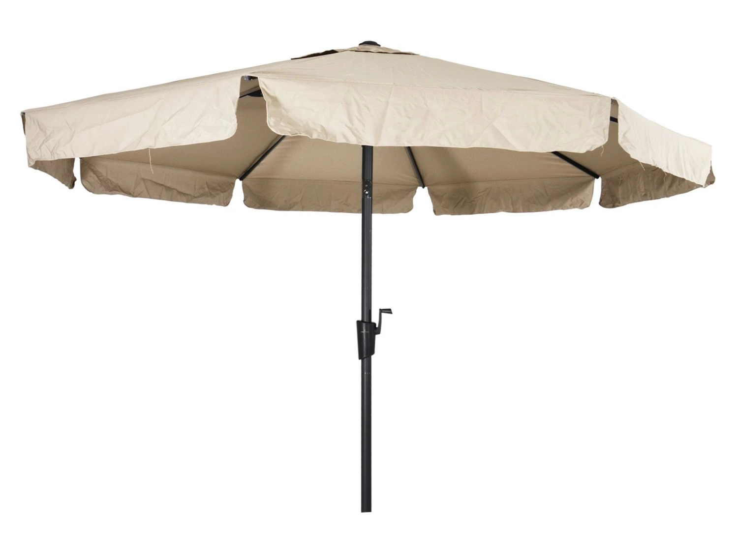 De Senna heeft een frame van aluminium en acht metalen baleinen. En met het draaimechanisme draai je de parasol heel eenvoudig open en dicht. Deze parasol wordt geleverd zonder parasolvoet!