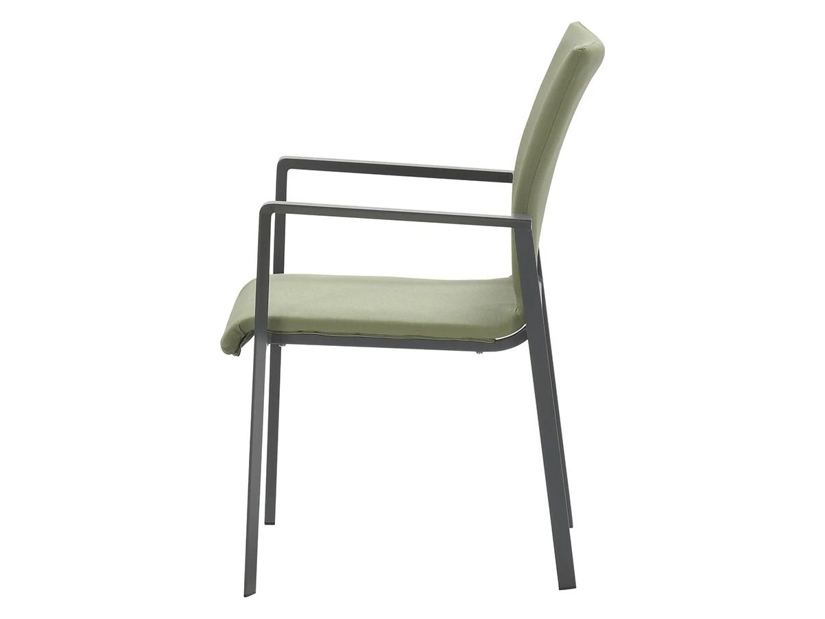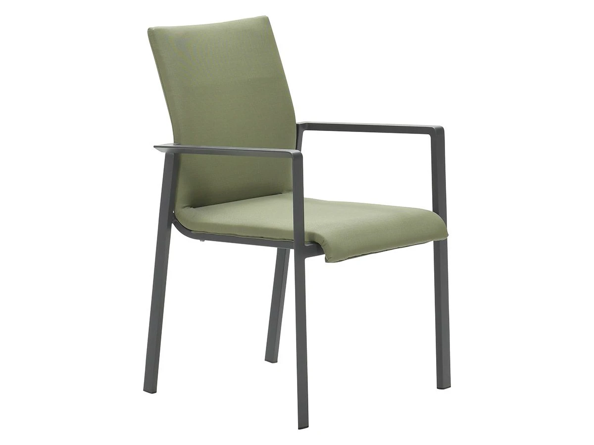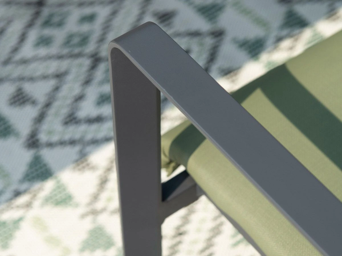 Het frame van de Texas is gemaakt van aluminium met een beschermende poedercoating met daarop een zitting en rugleuning van textileen. Beide duurzame en onderhoudsvrij materialen. Het voordeel van een textileen zitting is dat het na een regenbui snel weer snel opdroogt en je dus zonder natte kleding te krijgen weer kunt gaan zitten.