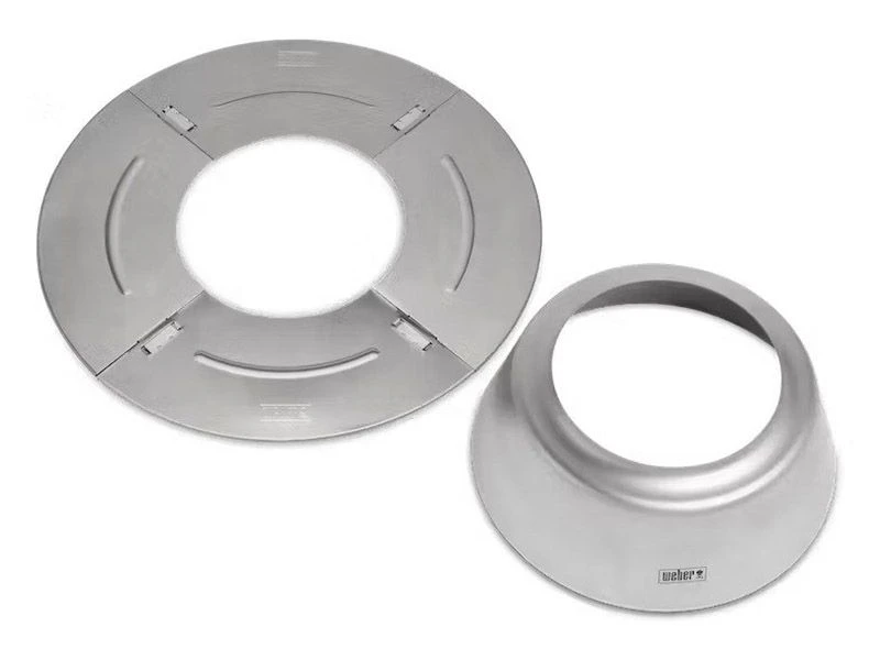 De diffuserring heeft een diameter van 46,5 cm en beide onderdelen zijn gemaakt van roestvrij staal. De kegel kan in de barbecue blijven voor veelvuldig, probleemloos gebruik en de diffuserring kan uit elkaar worden gehaald zodat deze compact opgeborgen kan worden.
