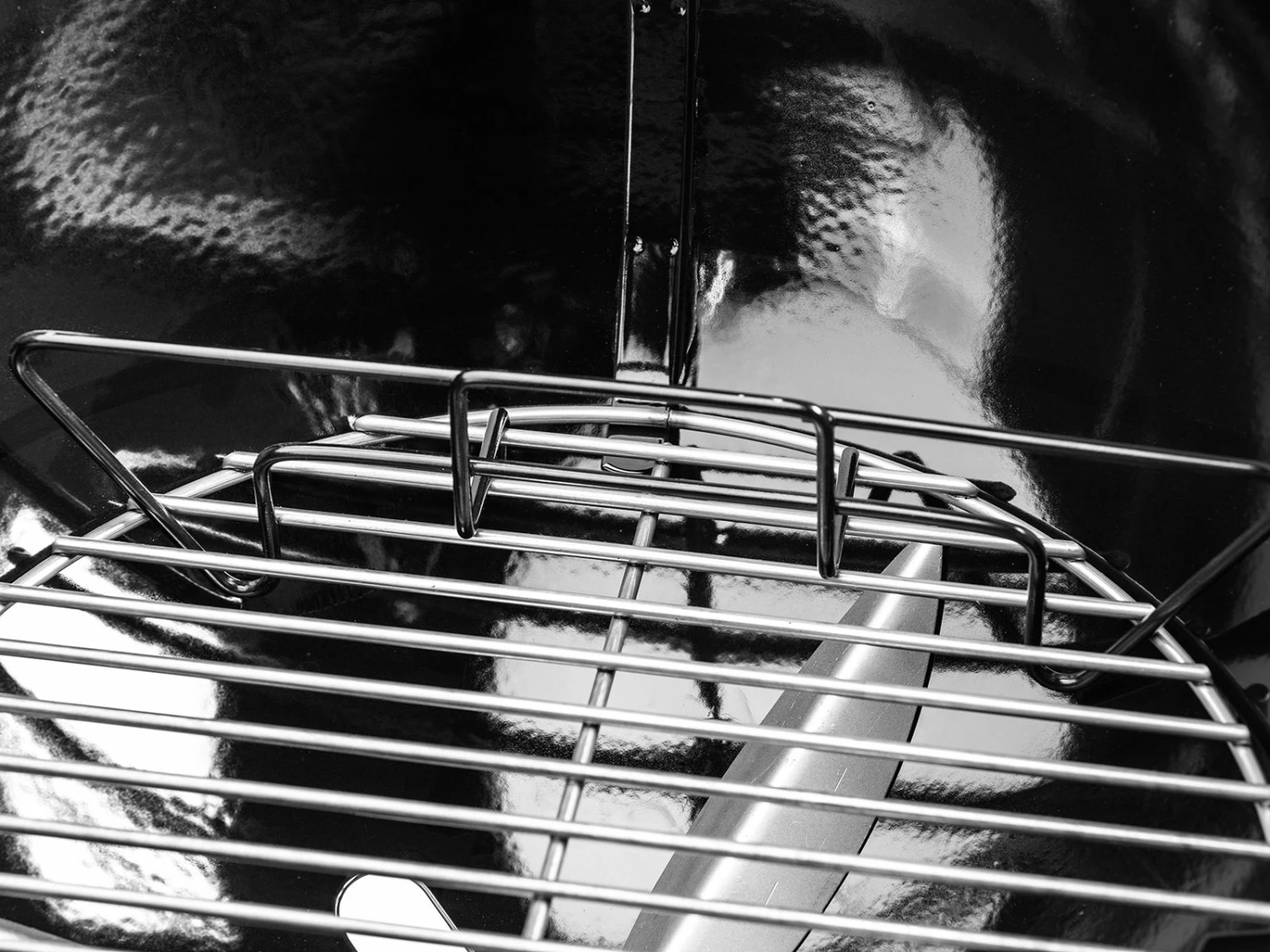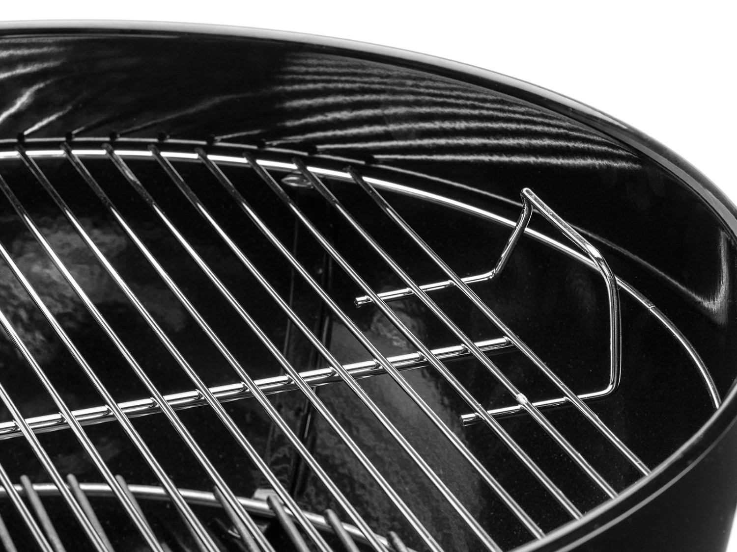 De Weber Original Kettle E-5710 is een basis model dat wel van alle gemakken voorzien is. Dankzij de vernieuwde functies blijft de iconische Kettle dé barbecue voor iedereen. Het One-Touch reinigingssysteem met diepe asopvangbak verwijdert het as en opent en sluit het roestvrij aluminium ventilatierooster. De geïntegreerde gereedschapshaken zorgen voor eenvoudige toegang tot het barbecuegereedschap. Het grillrooster heeft een diameter van 57 cm.