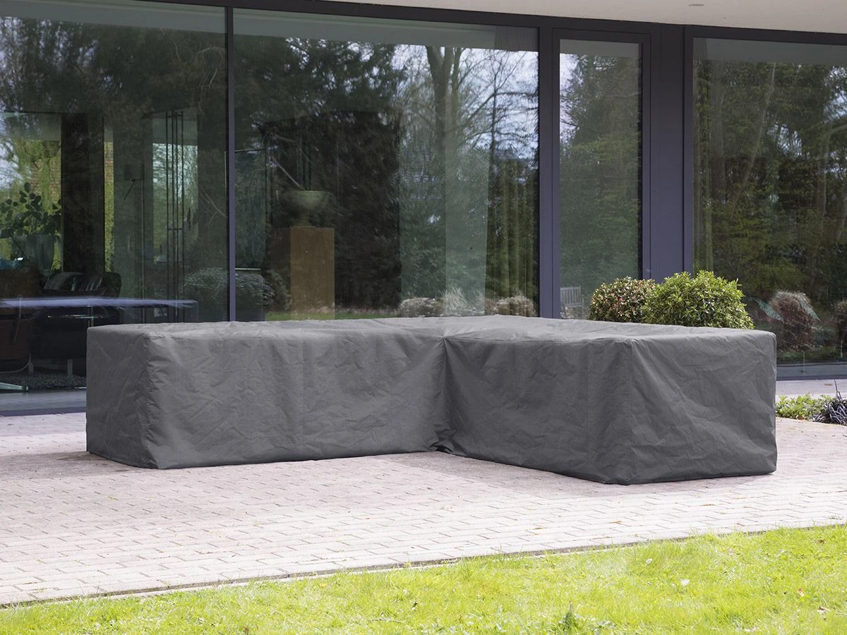Deze loungesethoes beschermt tegen regen, vuil en verkleuringen. De hoes is gemaakt van sterk en licht polypropyleen en is waterdicht (ook bij de naden), UV-bestendig en kleurvast. Dek je loungeset alleen af wanneer deze droog is om vochtschade te voorkomen. Eventuele tuinkussens kun je tijdens de winterperiode beter binnen bewaren.