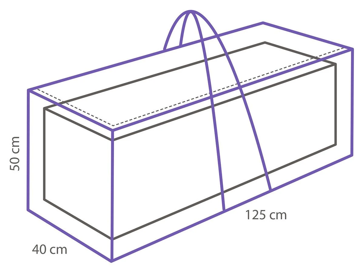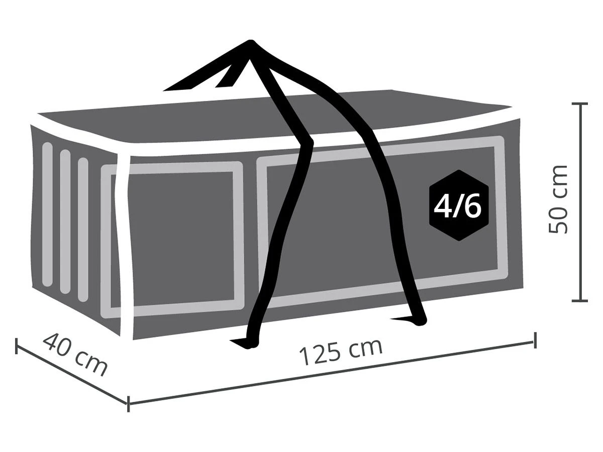 Let op: wij raden je aan alleen droge kussens op te bergen en de opbergtas altijd binnen in huis te bewaren om vochtschade te voorkomen.